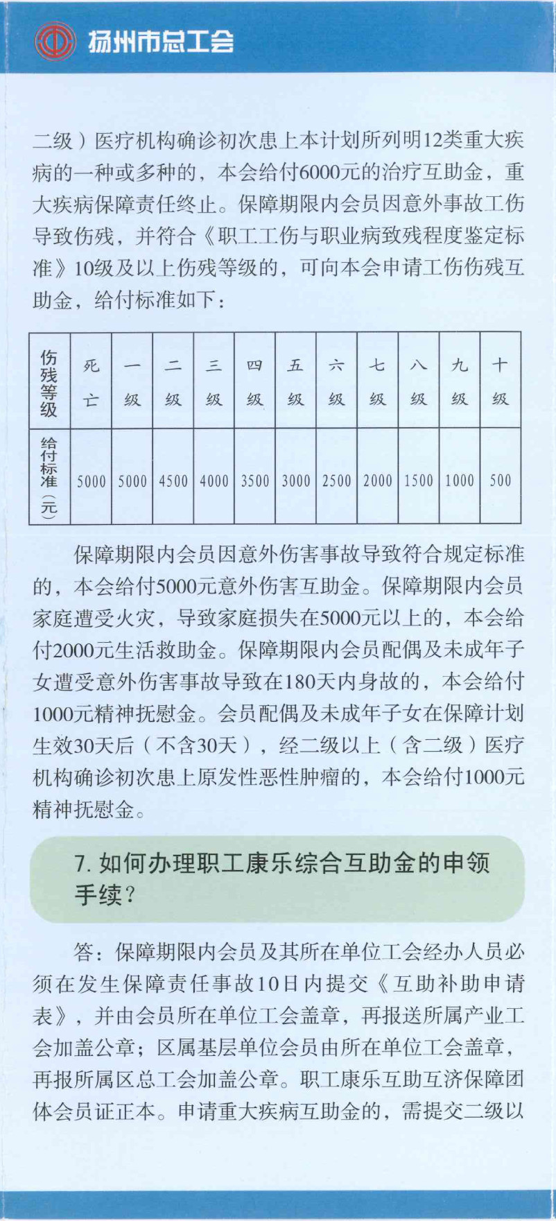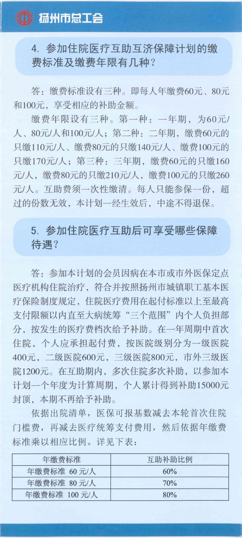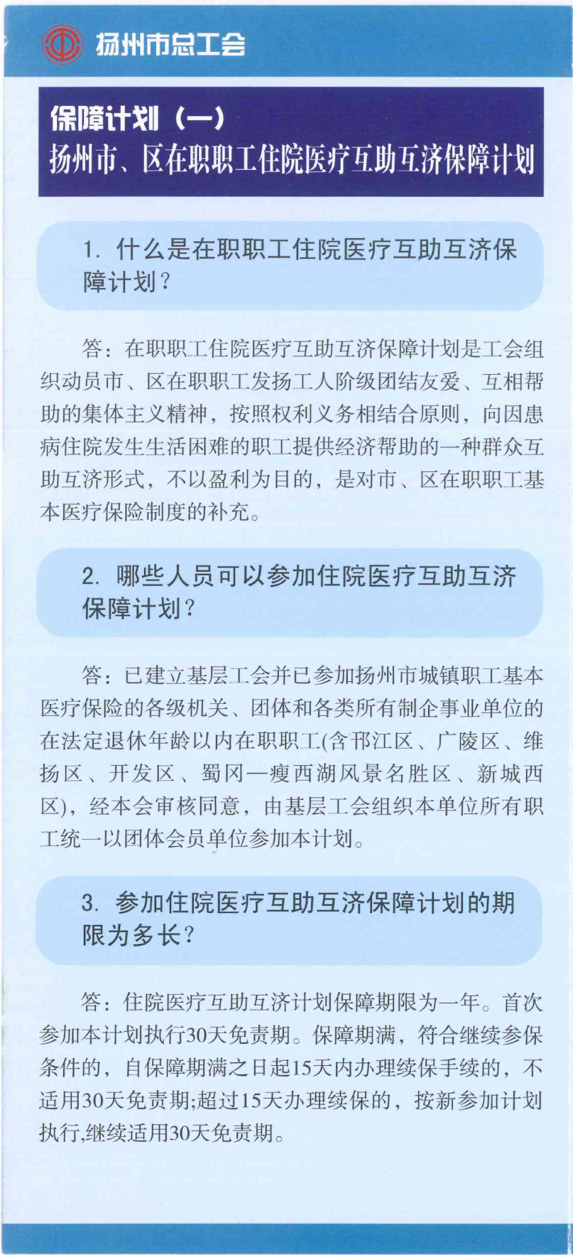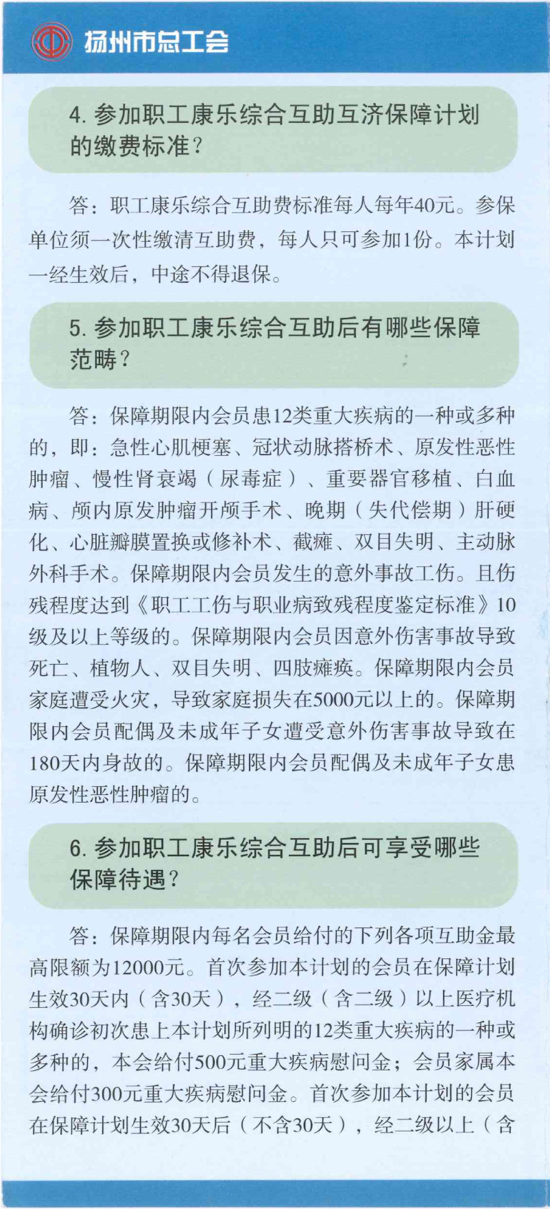 揚州市區(qū)職工互助互濟會保障計劃